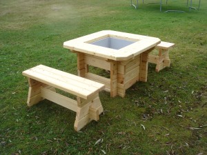 Liten grillplats. Yttermått 108*108 cm. Bänkar bredd 108 cm.